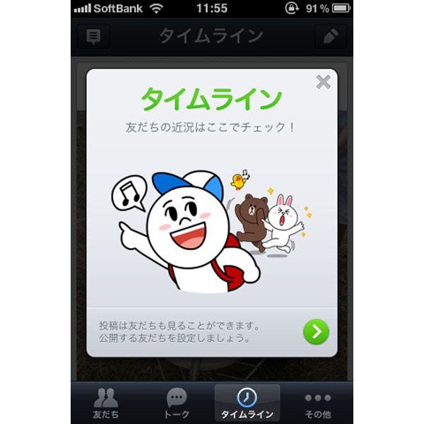 FacebookやTwitterとの最大の違いは、友達の投稿にスタンプを送れることです。Facebookで言う「いいね! ボタン」のようなもの。