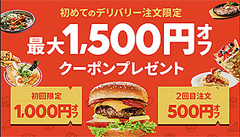 キャンペーンでは、初めて利用するユーザーにすぐに使える1000円オフクーポンと次回の注文で使える500円オフクーポンをプレゼントする。