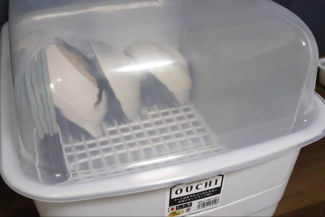 蓋をしておけば、衛生的にもバッチリ。実際に洗い終わったあとの食器の収納に困っていたのですが、こちら一つですべて解決しました!