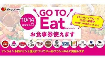 すかいらーくホールディングスは、「Go To Eatキャンペーン」に参画し、同グループの全ブランドでプレミアム付き食事券を使えるようにするとともに、一部ブランドでオンライン予約ポイントの付与を実施する。