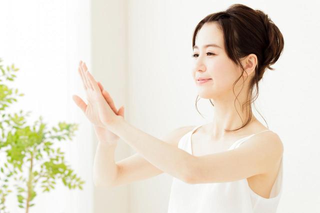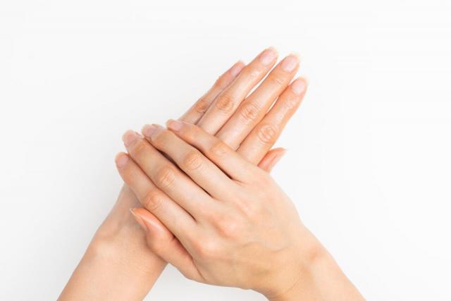 嶋田さん:オイルを手の甲など全体に塗り込み、なじませます。両手の指と指を交差させて、指の間にもオイルを塗り込みます。