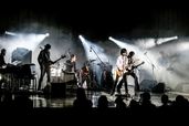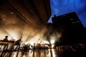 夕暮れの日比谷野音に拍手が響き、メンバーが姿を現す。「こんにちは。ようこそ。じゃあ始めますか」。宮本浩次がそう告げると、石森敏行がギターを爪弾きはじめる。そして宮本が歌い出したのは“「序曲」夢のちまた”。ドラムを中心に向き合って呼吸を合わせる3人が繊細な音を鳴らし、それを背中で受けながら朗々と歌い上げていく。だんだんとそのテンションが高まっていき、そこから一転、宮本もギターを提げてぶっといコードをかき鳴らすと“DEAD OR ALIVE”に突入だ。冨永義之が骨太なビートを叩き出し、高緑成治が重いベースラインを奏でる。テレビでのパフォーマンスはあったとはいえ、久方ぶりのライブなのにこの仕上がりはどうだ。とくに宮本。もちろんソロで動き続けているというのもあるだろうが、張りのあるみずみずしい歌声が東京の空いっぱいに広がっていく。それに呼応するように、3人+サポートメンバーの細海魚と佐々木貴之の音も蒼く燃えている。がんがん焚かれたスモークが乱反射する白い光に包まれた宮本が神々しい。