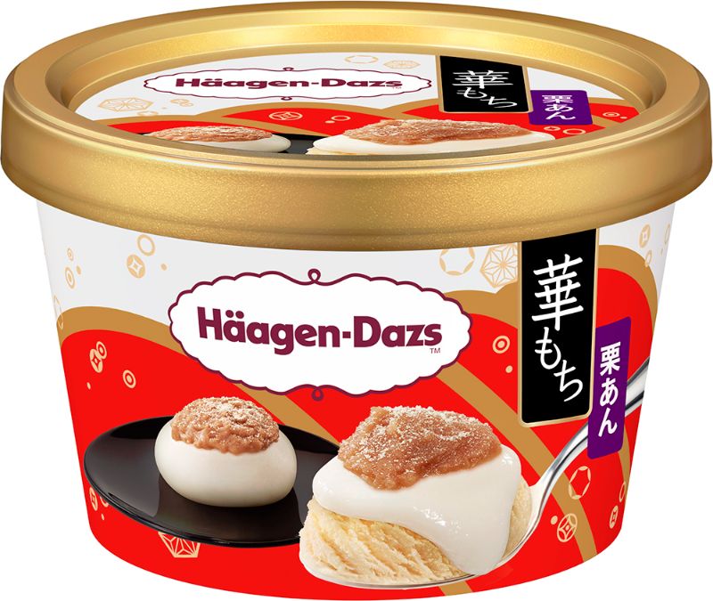 ”華もち”シリーズは、ハーゲンダッツのなめらかで濃厚な味わいのアイスクリームと、やわらかく伸びるもちを組み合わせた商品。