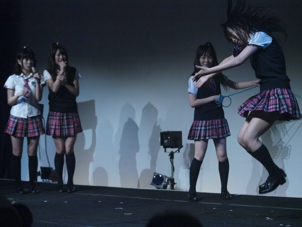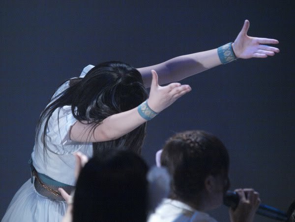 まず一曲目は、もちろんこの曲『ハジメマシテ』だったんですが、生誕祭だけあって、そのメンバーをイメージするサイリウムが用意されるんですね。こういうのも全部生誕委員になったファンのかたが用意されるようで、いやはや、ご苦労様でございます。途中のケチャを受けるシーンでは伊藤ちゃん以外が全員しゃがむんですが、そこでイトマキちゃんったら、まさかの逆ケチャ!や、なんていうんでしょう、この子のヲタっぽさというか、どうにもイタイタしさに親近感が持てるところって、結構得難いキャラな気がします。二期生を中心にしたMCタイムでも、大縄跳びしながらジェスチャーをさせられてたり、その必死な姿は爆笑を呼ぶとともに、共感と愛着を生むといいますかね...。「顔が大きい!」ということを特徴にしてたりしますが、実はなかなかに美少女だと思いますし、ホント面白い子ですよ、伊藤ちゃん!