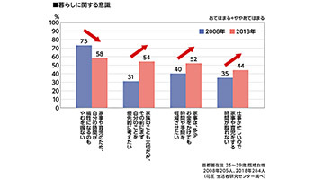一方、「家事や育児のため、自分の時間が犠牲になるのもやむを得ない」が低下し、「家族のことも大切だが、その前にまず自分のことを優先的に考えたい」が上昇した。