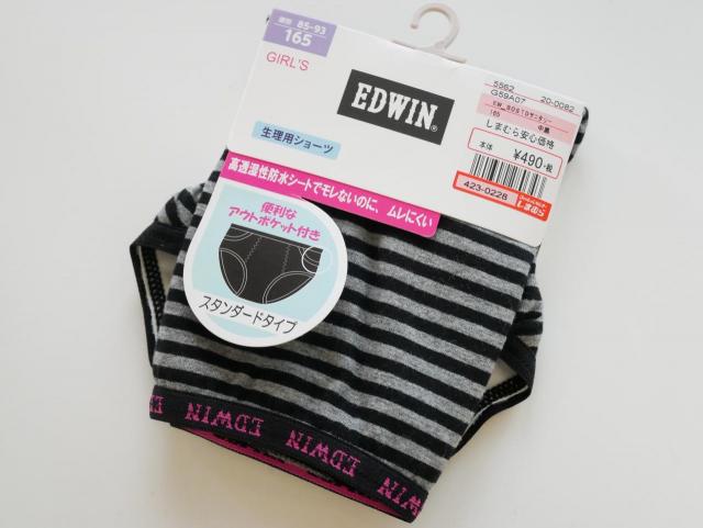 嬉しいのがデザインの豊富さ。例えばこれは、デニムでおなじみのブランド『EDWIN』!シンプルなデザインで、大人も履けそうですよね。しかも税抜490円とこちらも安い!