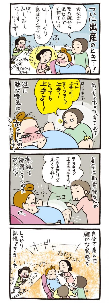 完全に自分のオマタが見えるような状態ではなかったですが、するっとナニカが自分の体外に出て行く感覚と、その瞬間に先生の手の中にナニカが出てきた様子が見て取れて、「あ、生まれた」「自分で産んだ」「自分の子だ」という確かな実感が、強烈に残りました。