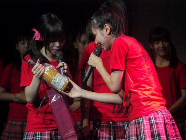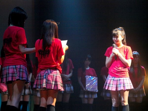 続くバースデイパーティでは、ファンの皆さんからなっちゃんにヒマワリの花束贈呈!夏生まれのなっちゃんにピッタリですよね、ファン&メンバーからのプレゼントでは、あーみんからすっごい高い(一本3000円とかするらしい!)オレンジジュースが。どんな味するんだろう…一瞬で飲んだらダメだよなっちゃん!そして、手紙のコーナーではゆうみんからなっちゃんへのメッセージ。いつも元気で安定しているように見えるなっちゃんが、本当に辛い時期もあったことが語られていて、ほんと、このメンバーからの手紙って毎回すっげー心を打つわけですよ!なっちゃんもガチ泣き!ゆうみんとハグハグ!支えあってるんでしょうね、メンバー同士で…。ずっとみんな休み無しで突っ走ってるもんね…。っていうか、ちょうど生誕祭があった日が誕生日だったんですよ、なっちゃん!バースデイ当日にこんなにたくさんの人に祝ってもらうって、ホント幸せでしょうねぇ…。