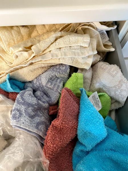 皺にならずアイロンいらずの小さめのタオルを使っています。冬もタオルをハンカチ代わりにバックに入れています。