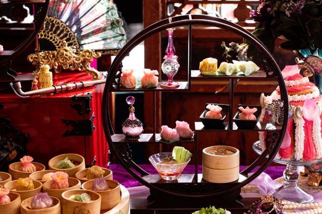 「王朝」料理長・柳谷 雅樹が手掛ける西太后と楊貴妃をイメージした点心や前菜、スープなど約10種類に加え、エグゼクティブ・ペストリーシェフ・播田 修によるマリー・アントワネットスイーツ約10種類を好きなだけ楽しめる本プラン。