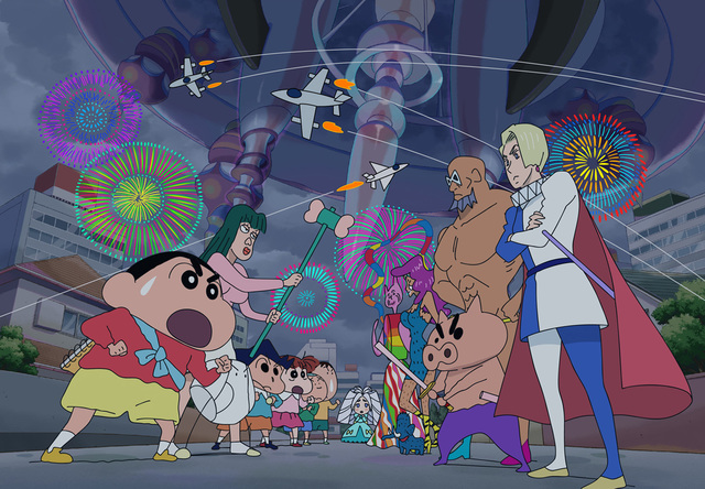 地上のラクガキ不足によって崩壊の危機に瀕した王国“ラクガキングダム”の進撃によって地球が大混乱に陥るなか、選ばれし勇者しんのすけとラクガキヒーロー3人が珍妙な奮闘を繰り広げる様を描きます。クレヨンや色鉛筆を画材に用いた世界観にも注目です。