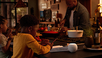 スマートスピーカーしては、iOS 14を搭載したiPhone/iPad/iPod touchとスムーズに連携し、再生中の音楽を引き継いだり、電話に応答したりできる。AI音声アシスタントのSiriは誰が話しているのかを認識し、音楽やPodcastを好みに合わせて調整するほか、メッセージ、リマインダー、メモ、カレンダーの予定へのアクセス、電話の発信や応答などのパーソナルなリクエストに対応する。