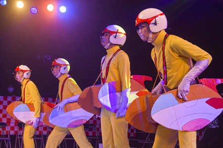 アニメのナンセンスさをそのまま再現し「究極の2.5次元」を見せつける一幕があると思うと、オリジナル展開では、現在、劇場に来ている、そして配信を見ている誰もが思っているだろうフラストレーションを4人のチャージマン研たちがそれぞれに爆発させ、また敵役である魔王(演・村上幸平)、ジュラル星人(演・浜ロン他)らとタッグを組む熱い展開も。思いもよらないところに伏線があったりと、前半約40分、10分間の休憩をはさみ、後半約50分の全100分を息つく暇なく楽しませてくれる、こんな時だからこそ底抜けぬ笑えるチャー研ワールドを、ぜひ劇場で体感してほしい。