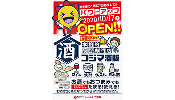 酒類もコジマのポイントサービスの対象となり、たまったコジマポイントを使って買い物をすることもできる。リニューアルオープンセール期間の10月17日から11月1日は、オープン記念特典として同社指定の酒類・飲料・おつまみのコジマポイント10%ポイントサービスを実施する。