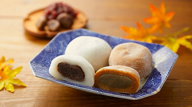 栗粒が入ったこしあん大福と、粒あん入りの大福のセットです。