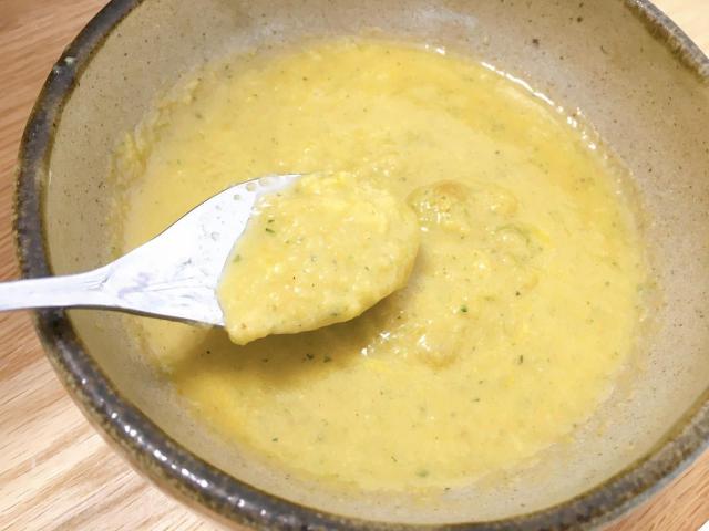 あっという間にキューブが溶けてポタージュの完成!これなら朝の忙しい時間にも手軽に作れそうです。