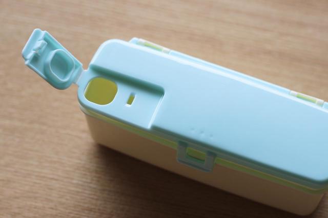 そこで活躍するのがこのケース。細長いあかちゃんせんべいもぴったりおさまり、卵ボーロは一粒ずつ取り出すことができます。これはお出かけ時の心強い味方になりそう!