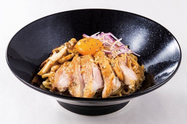 女性も大好きな方が多いはずの“クリーミー”な油そば「香草仕立てのクリーミー油そば(税込850円)」は、香草仕立てのローストチキンがクリームとベストマッチしています!