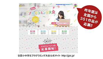 第5回全国小中学生プログラミング大会は、小中学生を対象としたプログラミングコンテストで、応募期間は7月1日から11月3日まで。その後の審査で入賞作品を選定し、21年2月28日に開催する最終審査会で入賞者に作品をプレゼンテーションしてもらい、審査員がグランプリほか各賞を決定・発表する。