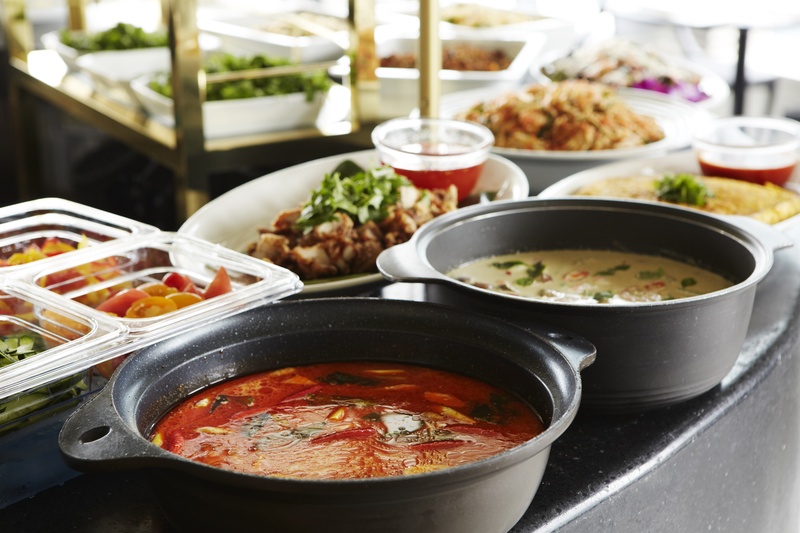マンゴツリー東京では、ランチタイムに、ヤムウンセンやグリーンカレー、パッタイなどの本格タイ料理を丸の内の眺望とともに満喫できるランチブッフェを実施。