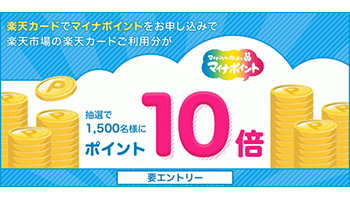 楽天カード会員向けには、今回のキャンペーンへのエントリーとマイナポイントの申し込み・登録で、抽選で1500人に楽天市場の楽天カード利用分がポイント10倍になるキャンペーンを開催する。まだ楽天カードを持っていない顧客には、新規入会と利用で5000ポイント付与、さらに同キャンペーンへのエントリーとマイナポイントの申し込み・登録で楽天市場での買い物ポイントが10倍になるキャンペーンを開催する。