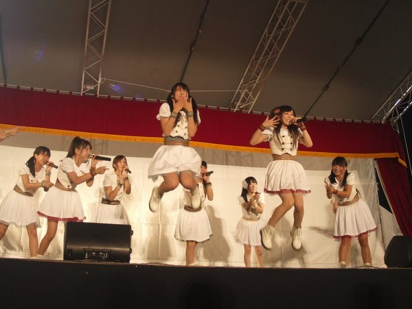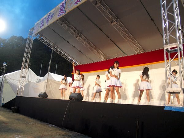 この日も『シアワセのエナジー』から始まる最近の定番セトリという印象だったんですが、それにしてもお祭りのステージって高まりますね!アイドルがやってきた、という非日常感と祭りの雰囲気がマッチして、公演やインストアライブとはまた違った盛り上がり方があります。LinQの大きな旗は見るの初めてかもだし、曲と曲の合間に迷子のお知らせをするなんて驚愕の展開が!あと、子ども達がたっくさん寄ってくるんですよね。智聖お姉さんに続け!未来のLinQメンバーという感じの女の子もいれば、超ド級にピンチケな若武者まで!サイリウムは事前にメンバーが配ってたやつですかねー。絶対この子広島から福岡に遠征するようになりますよねー(笑)。そんな大盛り上がりの会場に向けて、今日も水鉄砲を打ち込むゆうみん!やりすぎじゃああああ!!!