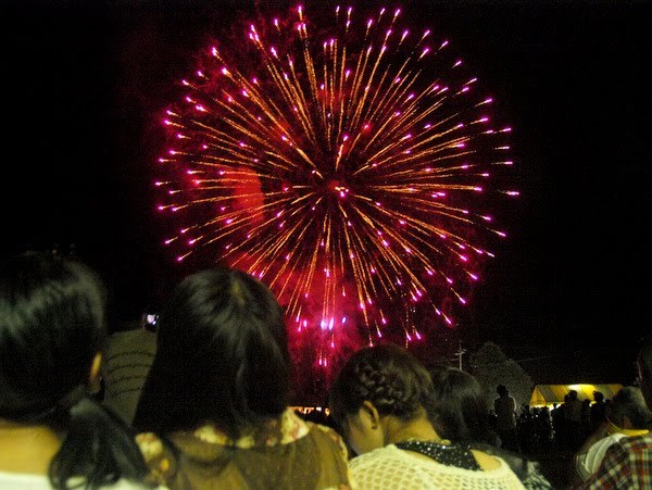 そしてそして、大花火大会が開催!雨の予報でしたが、どうにか天気が持ってくれたようで本当に良かった…。ベンチに座り、花火を見上げるくるみん、ももまゆちゃん、なっちゃん。あーたんは自慢のデジ一(ペンタックスでしたね)で撮影にご執心でした。や、すぐ先の山の合間から打ち上げるから、もうもんのすごく近くに見えるんですよ。視界全面が花火!みたいな。そんな満天の花火の下で抱き合うくるみん&ももまゆちゃん!うおおおなんだそりゃ恋空か!見てないけど!くるみんが長身なのもあって、ロマンチック満点カップリングでございましたご馳走様でした。