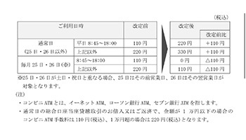 三井住友銀行は、さまざまなキャッシュレス化推進に向けた取り組みを進めてきたが、国内での現金利用機会の減少を踏まえ、手数料や各種優待サービスの提供方法の一部を見直す。最も利用者への影響が大きい項目は「コンビニATM手数料の改定」で、1回あたり現状より110円の値上げになるが、利用が集中する毎月25・26日の8時45分~18時の限り、条件なしに無料とし、実質的な負担増を回避する。