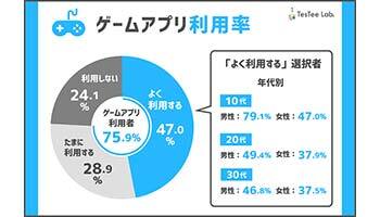 ゲームアプリの利用率は10代・男性がもっとも高いことが明らかに