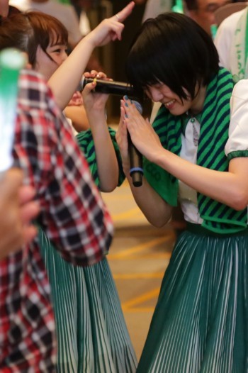 続く『恋のシャナナナ』では、本日2回目の会場練り歩き! お客さんとの距離が本当に近くて、お客さんとメンバーが背中合わせで踊っていたりするんですよ。通路は大混雑ですが、トラブル等ないのがいいところ。