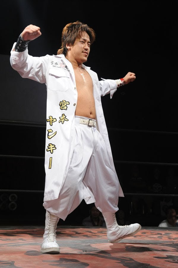 第5試合は現在(なぜか)今年の東スポプロレス大賞女子プロレス大賞を目指している宮本"ヤンキー"裕向選手(※男)と超有名女子プロレスラー・尾崎魔弓選手の試合。
