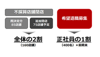 希望退職の募集は約400人。40歳以上~63歳未満で勤続5年以上の正社員と無期契約社員とする。募集期間は12月14日~21年2月19日を予定。退職日は21年5月31日となる。適用者には、割増退職金の支給と、会社負担による再就職支援を行う。割増退職金は特別損失として約40億円を見込んでおり、通期の業績予想に織り込んでいる。