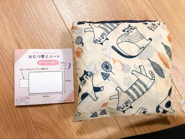 ちょうどダイソーでの買い物が終わったころに子供がぐずり出し、おむつ替えスペースに直行。早速使ってみました。まず嬉しかったのが大きさです。