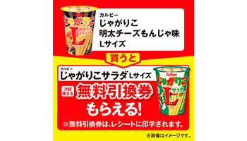 引き換え期間は11月10~23日。じゃがりこ明太チーズもんじゃ味 Lサイズが税込み170円、じゃがりこサラダ Lサイズが税込み170円なので、一つ分の値段で二つ購入できる計算だ。