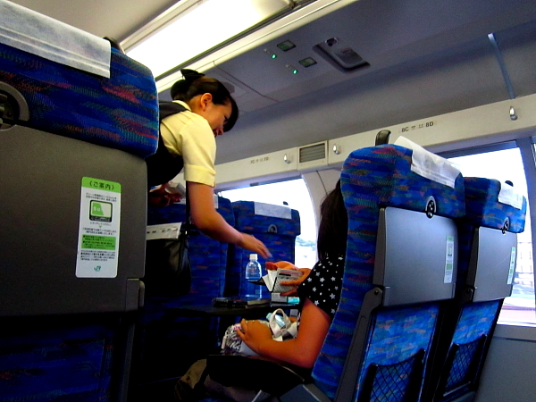 "グリーン車愛用姉妹"のお姉さんが、「すいません」とグリーンアテンダントに声をかける。お菓子とドリンクを買う。なんともほのぼの。「じゃ、僕も」というわけで、缶ビールを注文。「キリンになさいますか? エビスになさいますか?」。そんなやりとりがまた、プチリッチだったりする……。