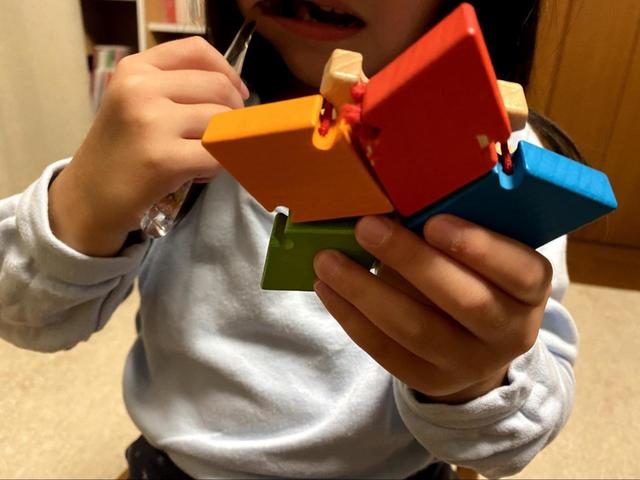 外側にあるカラフルな木のパーツがカタンと可愛い音を立てながら動きます。子どもが夢中で遊ぶうちに歯みがきを済ませてしまうこともできそうです。