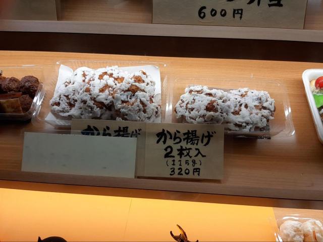 今回は平日の17:00頃に行きましたが、残念ながら目当てのお弁当は売り切れだったため、115g・320円の「から揚げ」単品を購入しました。