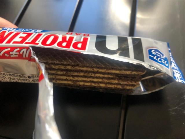『inバー プロテイン ウェファーバニラ』はタンパク質量10gです。ウエハースのような見た目、食感で少し珍しいなと思いました。おやつにも良さそうな甘味なので、お菓子っぽさを求める方におすすめです。