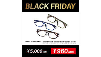 Zoff BLACK FRIDAYでは、プロパー店舗(正規店)で軽量プラスチック素材を使用して長時間の着用でもストレスフリーで装用できる「SUPER LIGHT」を、通常販売価格5000円のところ特別価格の960円で提供するほか、一部メガネを4600円、9600円(価格はいずれも税別)で購入可能なスペシャルプラスコーナーの展開を行う。