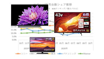 直近1年の販売台数シェア推移をみると、ソニーが首位をキープしているものの、徐々に後続との差が縮まっていることが分かる。右肩上がりなのが、東芝とパナソニックだ。年末商戦に向けて需要が高まるなかで、各社のシェア争いはより熾烈になりそうだ。