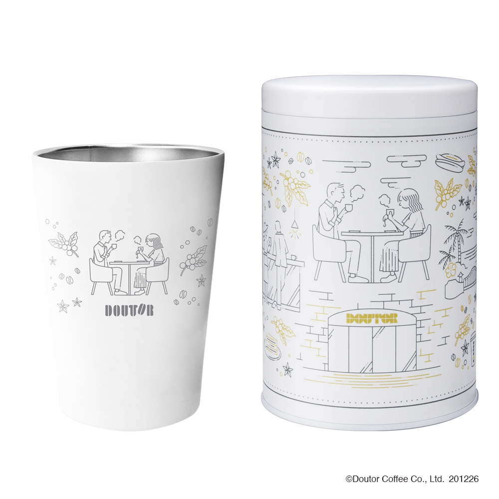 ドトールコーヒーショップで販売されている、200gのコーヒー豆がそのまま入る密閉タイプのキャニスター缶です。ドトールコーヒーショップのトピックや、ゆかりの場所がイラスト化されています。
