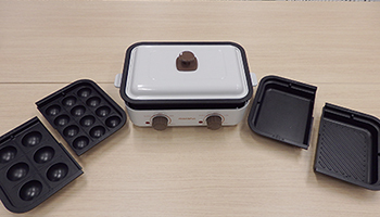 例えば、焼肉とたこ焼きを一緒につくったり、たこ焼きとチーズフォンデュをつくるといったことができる。たこ焼きも、シーンによって直径45ミリや38ミリなどサイズを切り替えて使える。しかも、ハーフプレートはそれぞれ温度が変えられるように、二つのヒーターとダイヤルを搭載。保温・弱温・中温・強温(最大240℃)から調節できるので、アイデア次第で料理のバリエーションも増えるだろう。