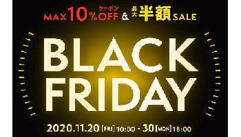 ブラックフライデー2020では、目玉企画として期間中に使える最大10%オフクーポンを配布するとともに、最大50%オフセールを行う。