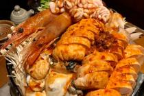 一の皿 海鮮:雲丹、あわび、はまぐり、金目鯛、ぼたん海老