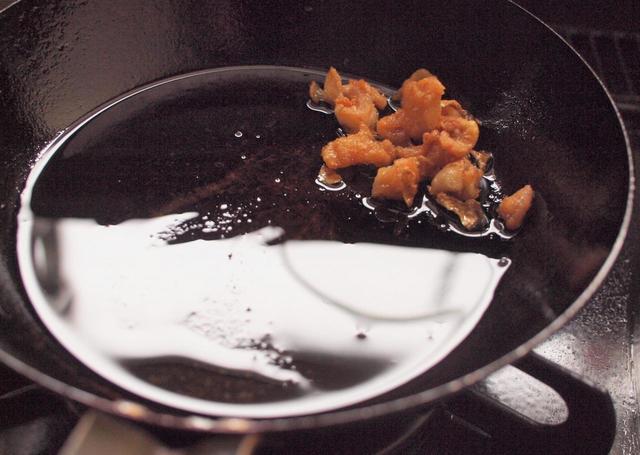 自宅で作る雞肉飯は、鶏胸肉の皮をネギや生姜と一緒にじっくり炒め、カリカリになるまで脂を出して「鶏油」を作るところから始める。