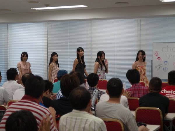 そうそう、リーダーの上原さんが「もっと!もっとフラッシュたいて!記者会見っぽく!」って煽ったり、わざわざ全員低いトーンで話して神妙感を出したりして、本気でふざけながら記者会見シチュエーションを楽しんでるのがまたエガッタです。なんかchoice?って基本的にかわいい子がキャッキャしてるんですよ(笑)。そこがいい!しかもこのイベント、ワンマンライブの半券があれば無料入場できたらしくて…太っ腹や!ここでのソロショットは、choice?いちの優等生内田ひとみちゃんと、別ユニットお菓子づくりにも参加の超絶美少女星野瑞映(みずは)ちゃん、そしてこの日を最後にソロとして活動する事になった田中佑奈ちゃんでございます。