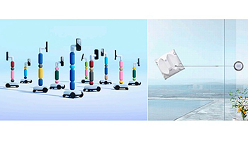 ポストコロナを見据え、消毒・床清掃ロボット(自律移動型)が床の清掃や手摺の消毒などを行う。将来的には、駅や商業施設、オフィスなどに導入し、顧客が安心して利用できる空間づくりを目指す。