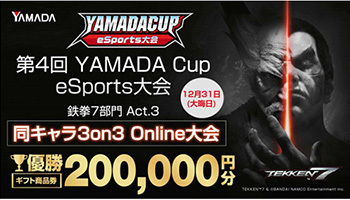 ヤマダデンキは、バンダイナムコエンターテインメントが開発・販売を行う「鉄拳7」(Steam版)を使用したオンライン大会「第4回 YAMADA Cup eSports大会 鉄拳7部門 Act.3」を12月31日に開催する。