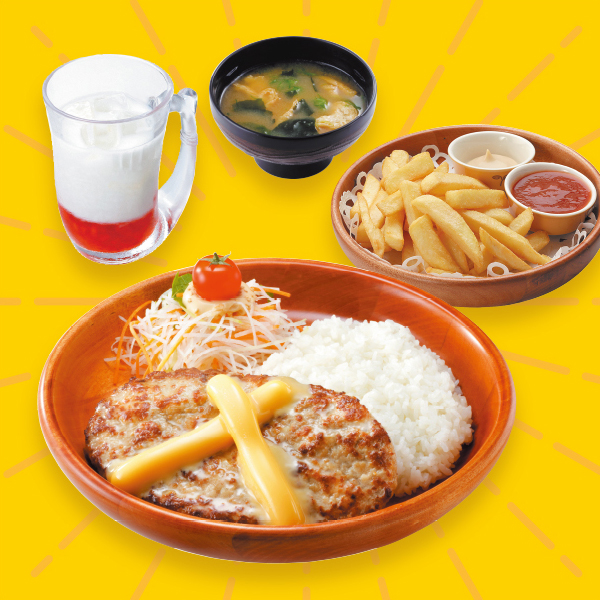 なお<チーズバーグディッシュ(150g)、みそ汁、つぶつぶ食感イチゴミルク、びっくりフライドポテト>の組み合わせが1番人気の組み合わせとのこと。