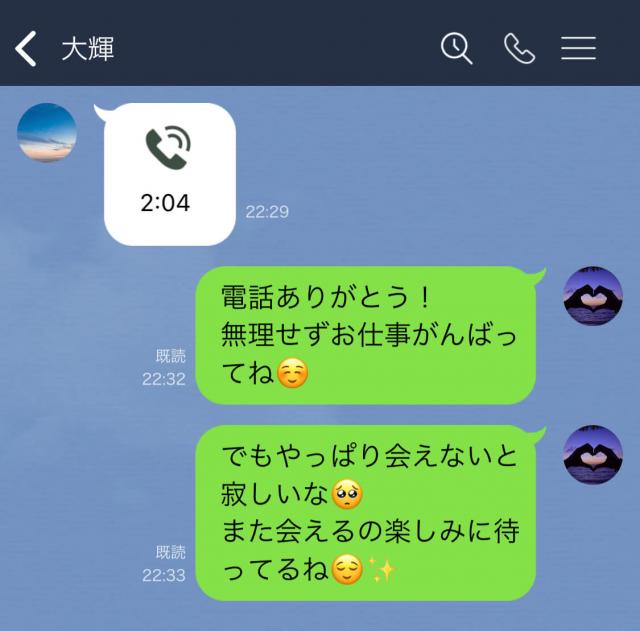 彼女は明るい声で了承してくれて、電話を切った後に電話のお礼と、仕事頑張って、とLINEが。